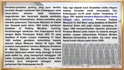 ulang tahun Kemerdekaan. Antara peristiwa yang sebagai ‘Jalur Gemilang’. Perayaan ‘Seabad