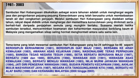 Tema-tema yang telah mewarnai sambutan Hari Kebangsaan yang ke-24 sehingga ke-46 seperti