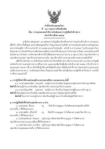 ระเบียบของทางราชการ โรงเรียนชุมชนบึงบา จึงมอบหมายหน้าที่ความรับผิดชอบการปฏิบัติหน้าที่ราชการ ประจำปี