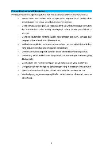 Prinsip-prinsip berikut perlu dipatuhi untuk melaksanakan aktiviti kokurikulum iaitu: