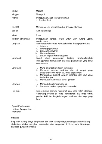 Bagi MBK kurang upaya penglihatan dan MBK kurang upaya pendengaran aktiviti yang