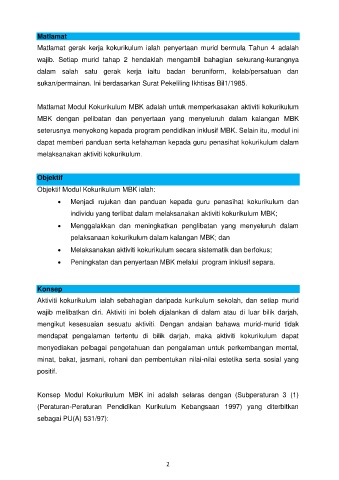 Konsep Modul Kokurikulum MBK ini adalah selaras dengan (Subperaturan 3 (1)