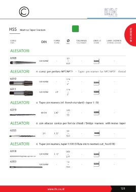 ALESATORI conici per preforo NPT/NPTF - Taper pin reamer for NPT/NPTF thread