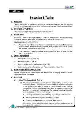 This procedure applies to all inspection and test activities.