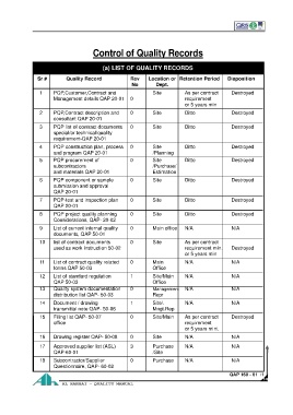 15 Filing list QAP- 50-07 0 Site/Main As per contract Destroyed