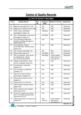 Sr # Quality Record Rev Location or Retention Period Disposition