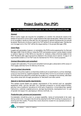 and management of the PQP will be the responsibility of the project Manager (PM).