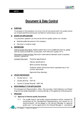 The Management Representative, office / Site secretary, Chief Estimator and Project