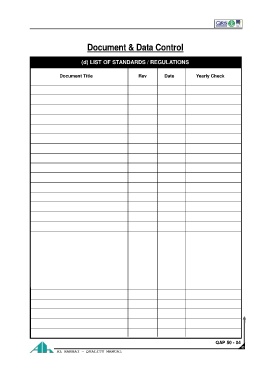 Document & Data Control (d) LIST OF STANDARDS / REGULATIONS Document Title Rev Date Yearly Check QAP 50 - 04 63 AL HABBAI - QUALITY MANUAL