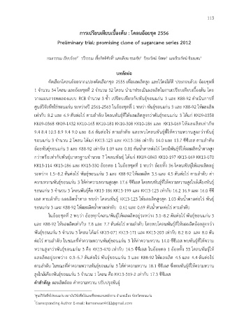 ขอนแก่น 3 จานวน 2 โคลน ไดแก่ KK13-123 และ KK13-186 เทากับ 14.0 และ 13.7 ซีซีเอส ตามลาดบ