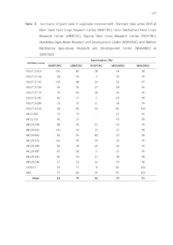Table 2 Germination of plant cane in sugarcane improvement : Standard trials series 2013 at
