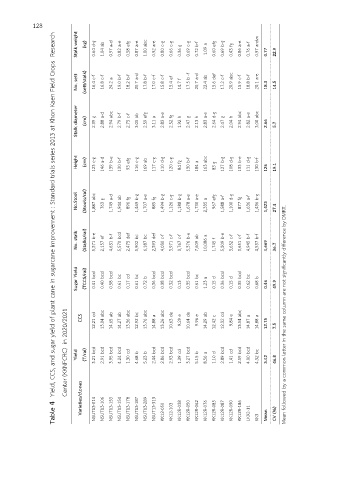 Table 4 Yield, CCS, and sugar yield of plant cane in sugarcane improvement : Standard trials series 2013 at Khon Kaen Field Crops Research