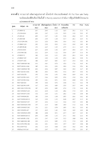 ตารางที่ 2 ความยาวลา เสนผานศนย์กลางลา น้ าหนักลา จานวนปลองตอลา คา Pol Fiber และ Purity