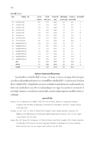โคลนอ้อยทผานการคดเลอกขั้นท 1 จานวน 172 โคลน จากจานวน 82 คผสม เมื่อน าไปปลกลง