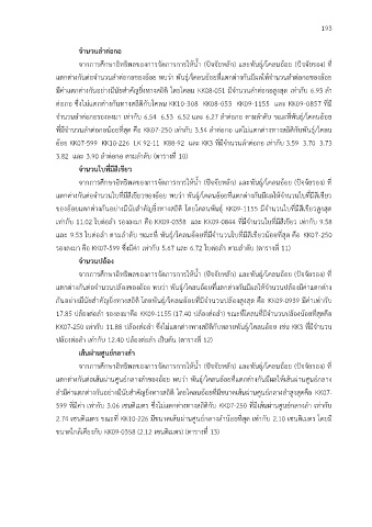 KK07-250 เท่ากับ 11.88 ปล้องต่อล า ซึ่งไม่แตกต่างทางสถิติกับหลายพันธุ์/โคลนอ้อย เช่น KK3 ที่มีจ านวน