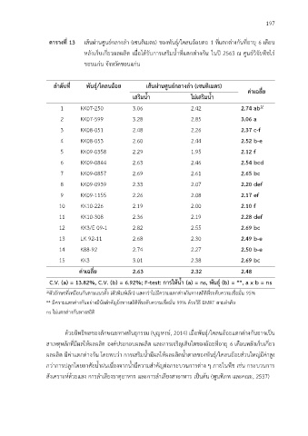 ตารางที่ 13 เส้นผ่านศูนย์กลางลา (เซนติเมตร) ของพันธุ์/โคลนอ้อยตอ 1 ที่แตกต่างกันทอายุ 6 เดือน