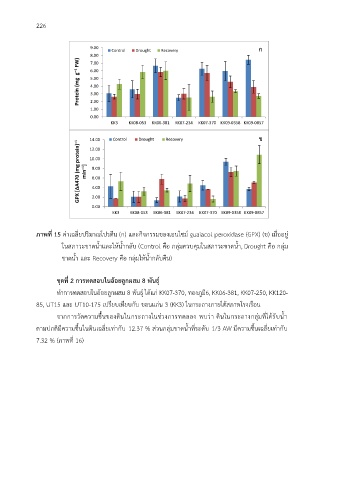 ภาพที่ 15 คาเฉลยปริมาณโปรตน (ก) และกิจกรรมของเอนไซม์ guaiacol peroxidase (GPX) (ข) เมื่ออยู่