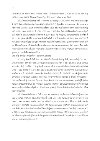 โคลนพันธุ์ KK07-037 KK07-250 และ พันธุ์ KK3 ให้ผลผลตมากทสด ท 22.4 20.2 และ 20.1 ตนตอไร่