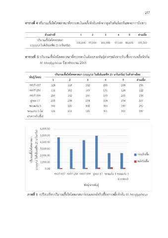 ตารางที่ 5 ปริมาณเชอไฟโตพลาสมาทตรวจพบในอ้อยสายพันธุ์ตางๆหลงจากรับเชอจากเพลยจกจน