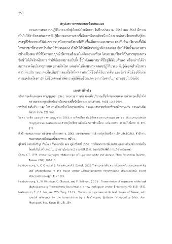 วสุดา วรชัย และยพา หาญบุญทรง. 2561. การคัดเลือกพนธอ้อยทนทานตอแมลงพาหะ Matsumuratettix