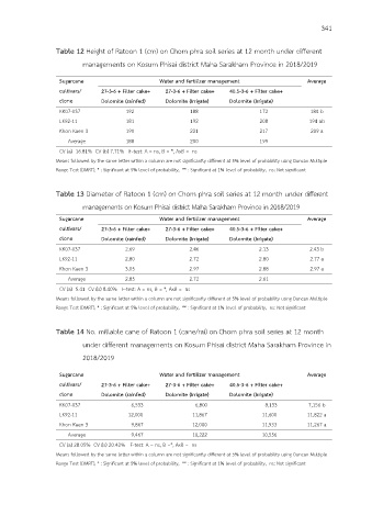 Table 12 Height of Ratoon 1 (cm) on Chom phra soil series at 12 month under different