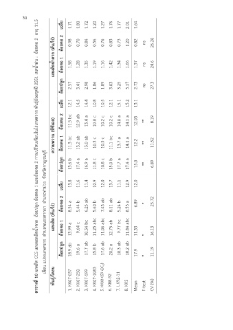 อ้อยตอ 1 13.99 a 9.64 c 10.34 bc 11.25 abc 11.06 abc 12.75 ab 9.77 bc 11.84 abc 11.33 16.13
