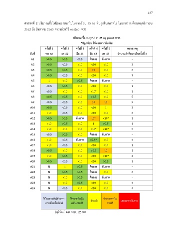 2562 ถึง สิงหาคม 2563 ตรวจด้วยวิธี nested-PCR