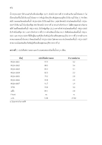 0001 และ KKj16-0004 ทมีสอยู่ในเกณฑ์เดยวกับพันธุ์เปรียบเทยบสพรรณบุรี50 (ตารางท 2) ทางดานการ