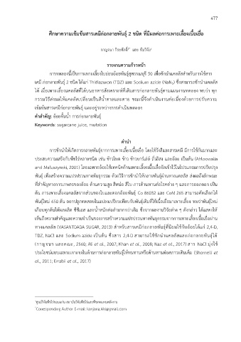 ค าส าคัญ: อ้อยคั้นน้ า การก่อกลายพันธุ์