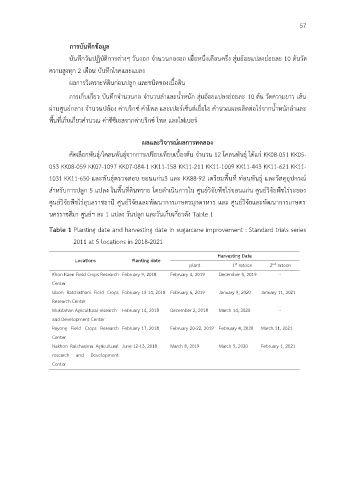 นครราชสีมา ศูนย์ฯ ละ 1 แปลง วันปลูก และวันเก็บเกี่ยวดัง Table 1