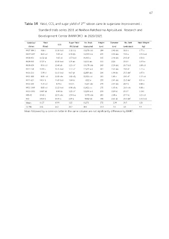 Table 14 Yield, CCS, and sugar yield of 2 ratoon cane in sugarcane improvement :