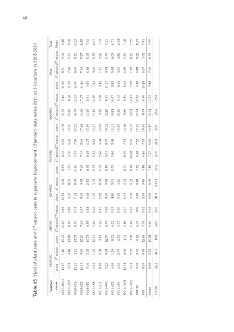 Table 15 Yield of plant cane and 1 st ratoon cane in sugarcane improvement : Standard trials series 2011 at 5 locations in 2018-2021 plant 10.96