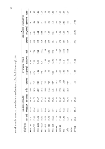 พ KK08-051 KK08-053 KK11-443 KK11-211 KK11-158 K88-92 LK92-11 KK3 เฉลี่ย F-Test CV (%)
