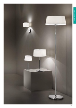 Chrome metal frame. PVC foil shade covered in fabric.