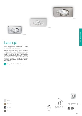 différentes finitions. Diffuseur fixe. / Einbauspot mit qua- Farben. Leuchtmittelhalter zentral einstellbar. / Armazón