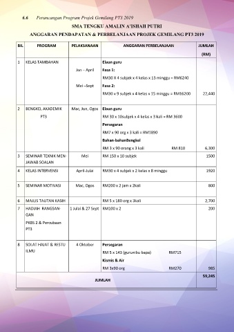 6.6 Perancangan Program Projek Gemilang PT3 2019