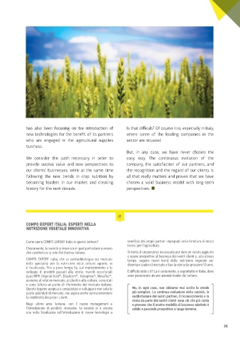 delle specialità per la nutrizione delle colture agrarie, si diventare leader di mercato e fare la storia dei prossimi 10 anni.