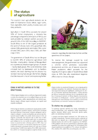 σματική παροχή αγαθών στα μεγάλα αστικά κέντρα σε όλη την Η γεωργία στη Νότια Αφρική αντιστοιχεί στο 10% περίπου της