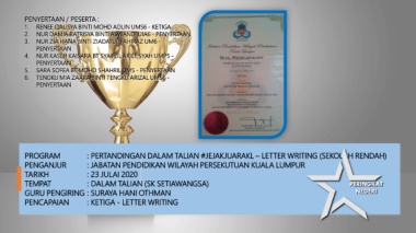PROGRAM : PERTANDINGAN DALAM TALIAN #JEJAKJUARAKL – LETTER WRITING (SEKOLAH RENDAH)