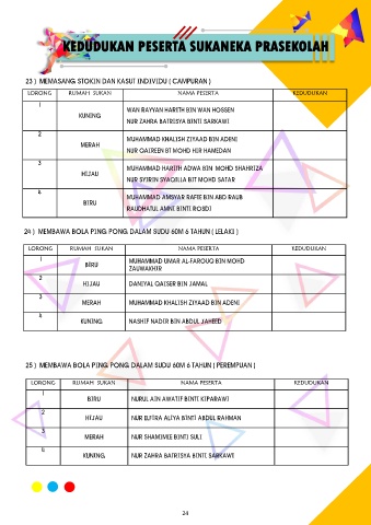 KEDUDUKAN PESERTA SUKANEKA PRASEKOLAH