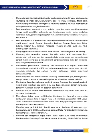 1. Mengendali sesi kaunseling individu sekurang-kurangnya lima (5) waktu seminggu dan