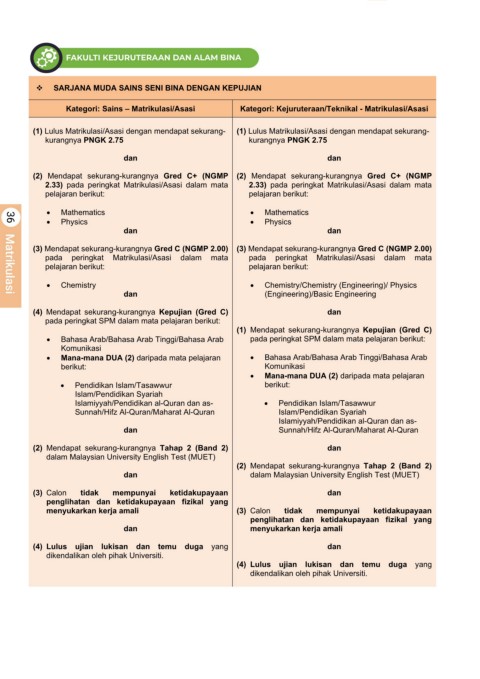 (1) Lulus Matrikulasi/Asasi dengan mendapat sekurang- (1) Lulus Matrikulasi/Asasi dengan mendapat sekurang-