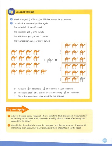 b) Then calculate (^ of 17 camels) + {^ of 17 camels) + (^ of 17 camels).