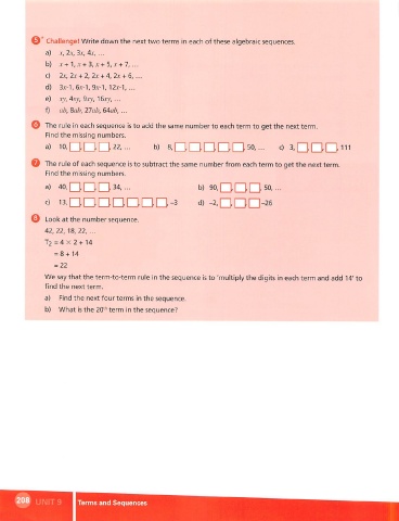 ©* Challenge! Write down the next two terms in each of these algebraic sequences.