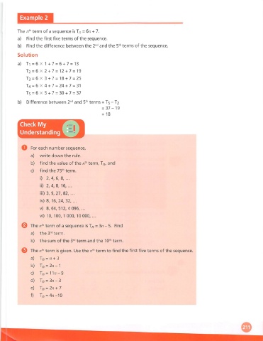b) Find the difference between the 2"'' and the 5^^ terms of the sequence.