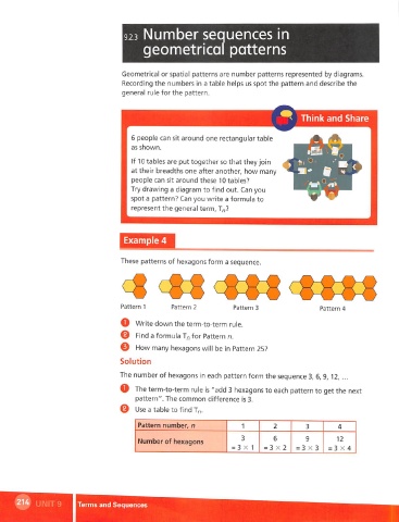 The number of hexagons in each pattern form the sequence 3, 6, 9, 12, ...