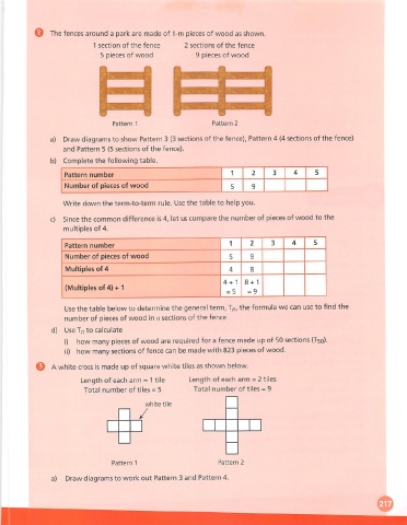 a) Draw diagrams to show Pattern 3 (3 sections of the fence), Pattern 4 (4 sections of the fence)