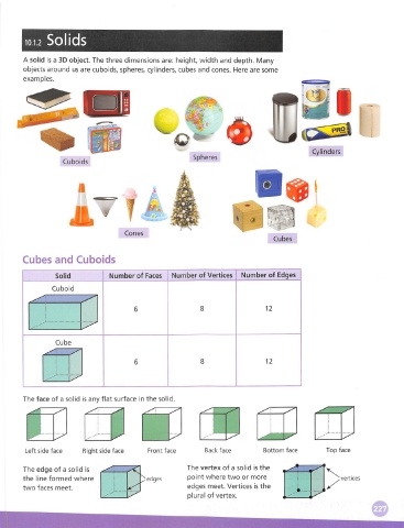 A solid is a 3D object. The three dimensions are: height, width and depth. Many