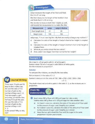 a) Calculate the ratio of the length of Jaslyn's foot to her height in simplest