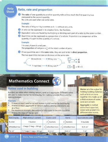 Builders use ratios when mixing cement, sand and aggregate. Different ratios holding building materials